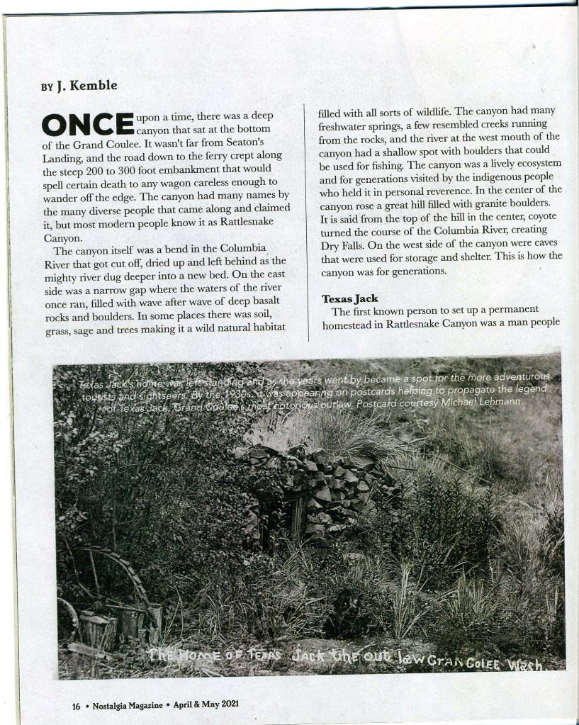 History of Rattlesnake Canyon part One Originally published in Nostalgia Magazine, April – May 2021 Share this: Click to share on X (Opens in new window) X Click to share on Facebook (Opens in new window) Facebook Like Loading...